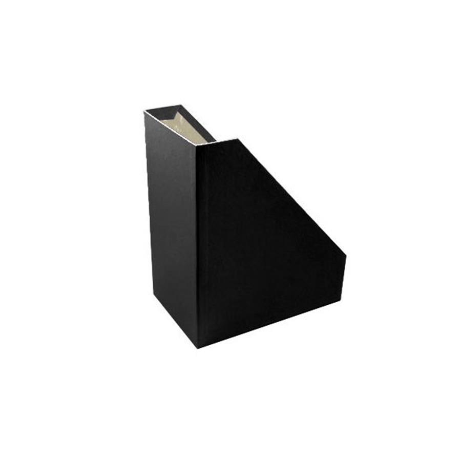 Suporte para revista em cartão preto com lombada de 160 mm.