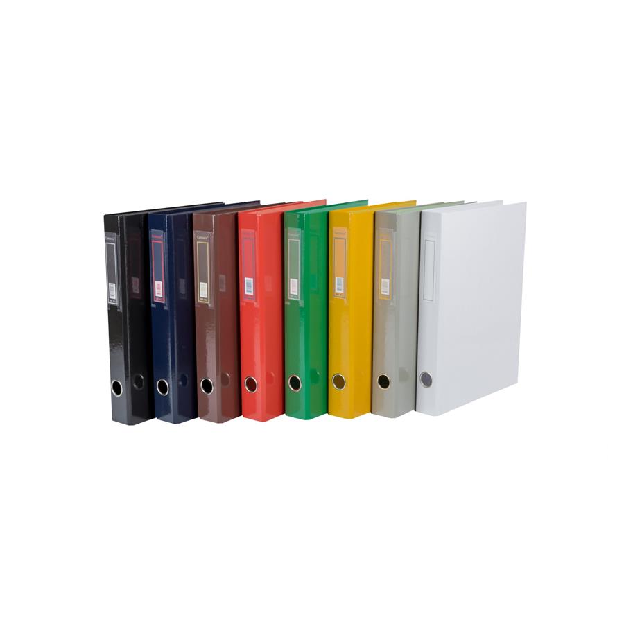 Arquivador no formato comercial (A4) em cartão forrado a papel litografado plasticizado.