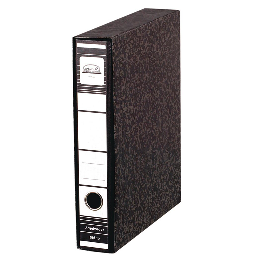 ANCOR PASTA 40CCW - PRETA (C/CX.) Arquivador em cartão forrado em papel Kraft verge marmoreado, oculo, lombada pequena (40), formato de arquivo comercial (A4) com caixa regida revestida mesmo papel Medida: 320X287X47 mm Quantidade mínima de encomenda = 5 unidades.