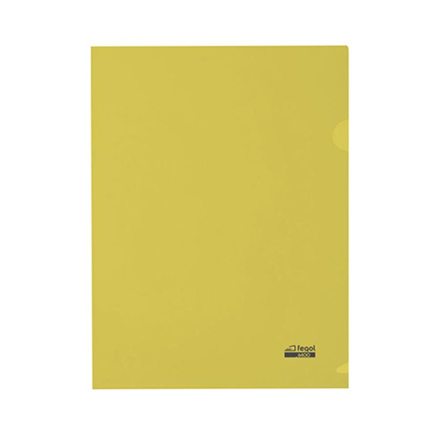 BOLSA ARQUIVO EM L A4 PP - AMARELA Bolsa em plástico transparente mate amarela com abertura em L (topo e lateral) e meia-lua Formato A4 Medidas: 310x230 mm