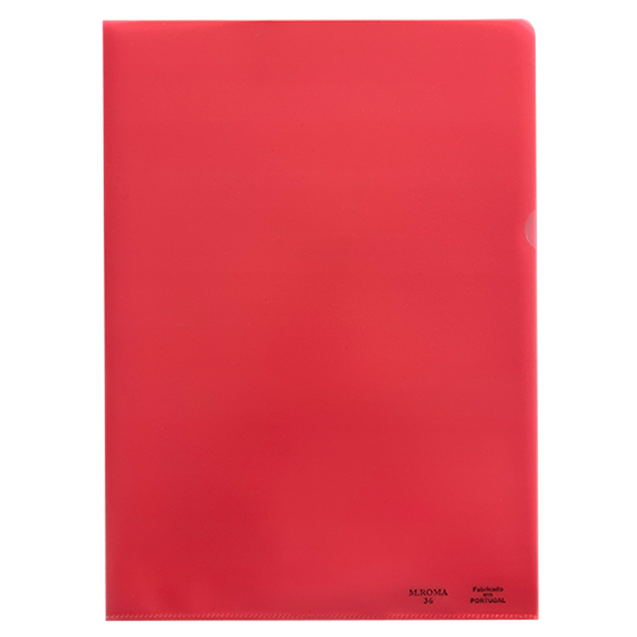 BOLSA ARQUIVO EM L A4 PP - VERMELHA Bolsa em plástico transparente mate vermelha com abertura em L (topo e lateral) e meia-lua Formato A4 Medidas: 310X230 mm