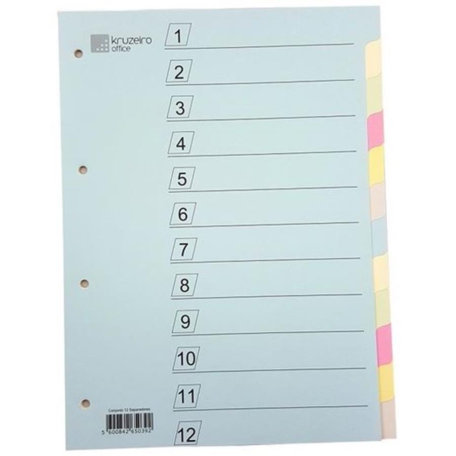 Conjunto separadores com 12 posições em cartolina CLA 180 grs numerados.