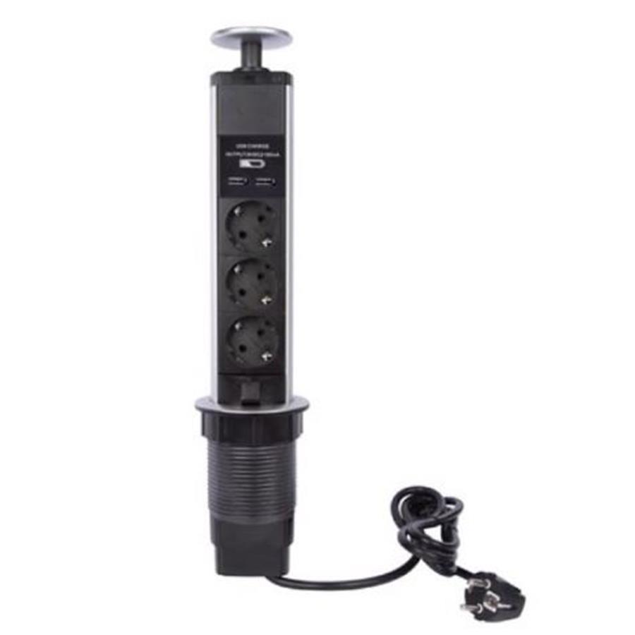 TOMADA TRIPLA POP-UP DE SECRETÁRIA + 2 X USB SCHUKO 1.4 MTS