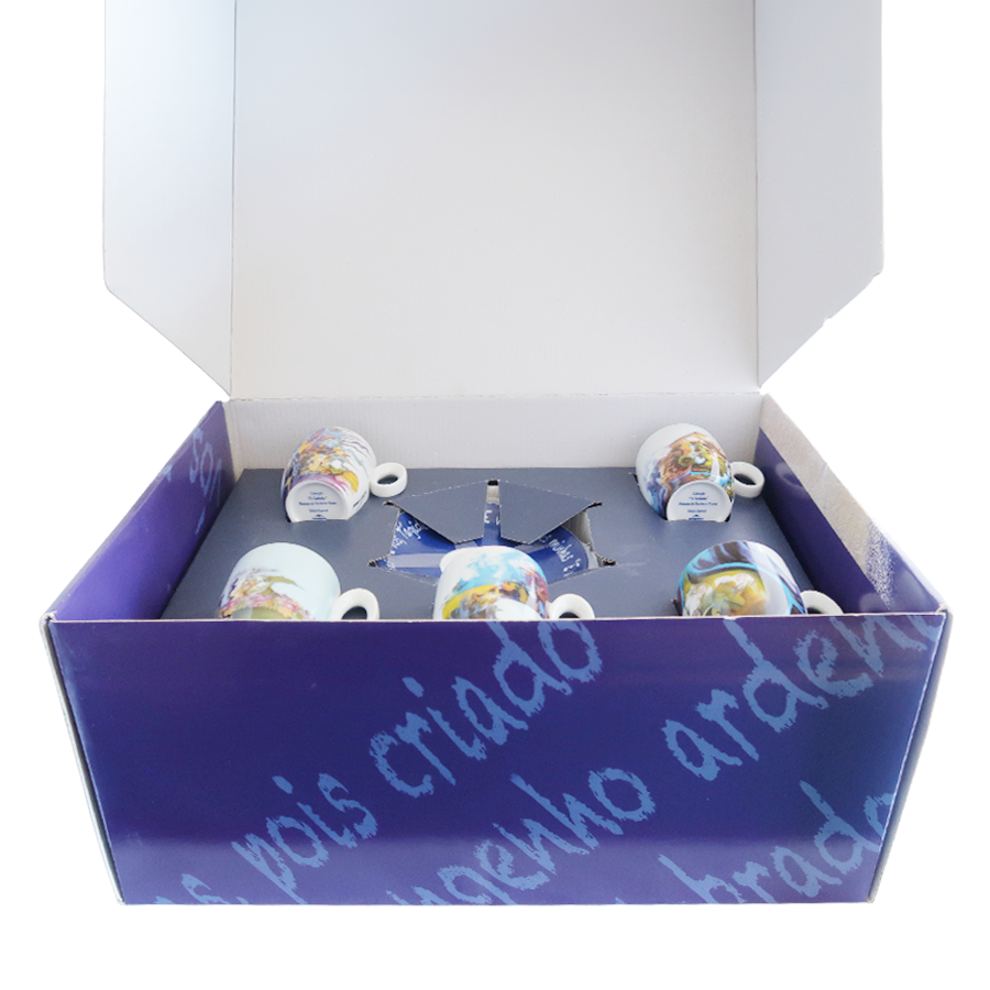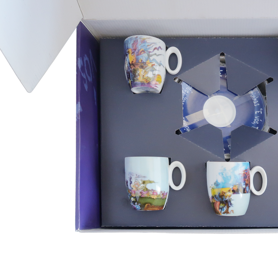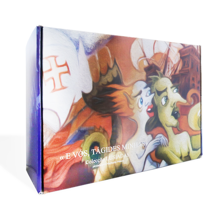 Cada chávena representa um canto dos Lusíadas (imagem e versos), através da pintura de Norberto Nunes.