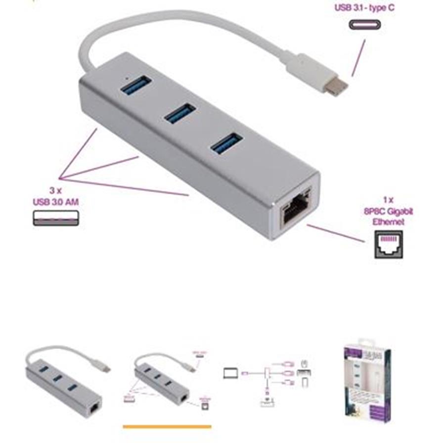 ADAPTADOR - USB - C PARA ETHERNET GIGABIT + 3 PORTAS USB